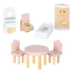 Każdy pokój w domku jest w pełni umeblowany, a zestaw solidnych drewnianych mebelków zachęca do odgrywania codziennych scenek, rozwijania empatii, wyobraźni i zdolności manualnych. Realistyczne detale, staranne wykonanie i ciepłe oświetlenie tworzą przestrzeń, w której dziecko może budować niekończące się historie, dekorować wnętrza i rozwijać swoją kreatywność przez wiele godzin.