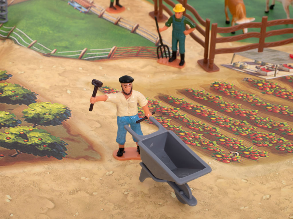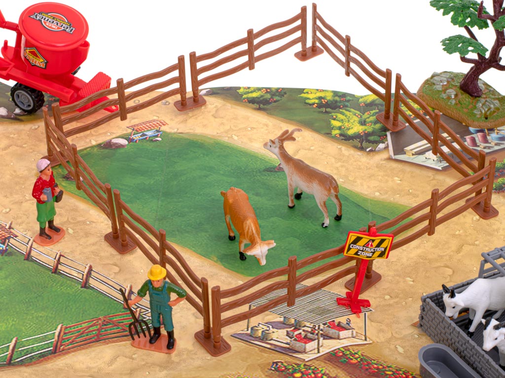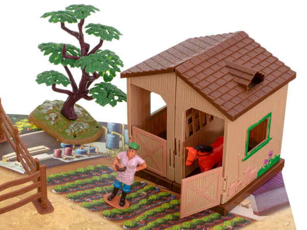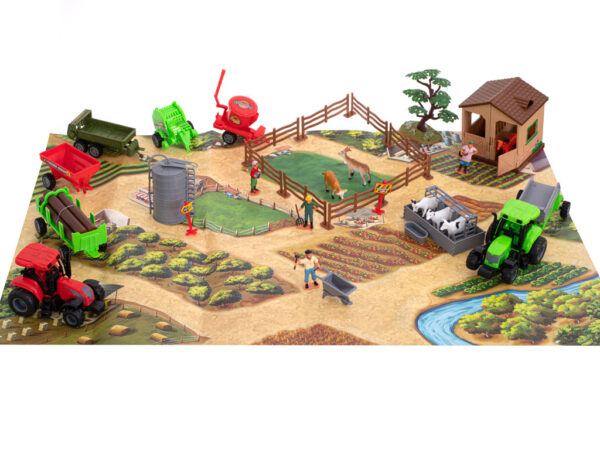 W skład zestawu wchodzi 49 elementów, w tym traktory, zagrody, zwierzęta gospodarskie oraz akcesoria, które pozwalają dziecku wcielić się w rolę prawdziwego rolnika. Zabawa rozwija kreatywność, logiczne myślenie i zdolności manualne, ucząc przy tym troski o zwierzęta i odpowiedzialności za swoje małe gospodarstwo. Dzięki realistycznym detalom zestaw pobudza ciekawość i zachęca do poznawania świata przyrody.