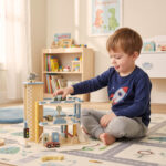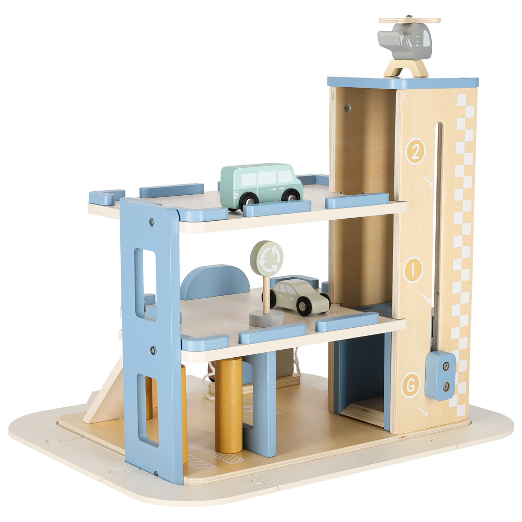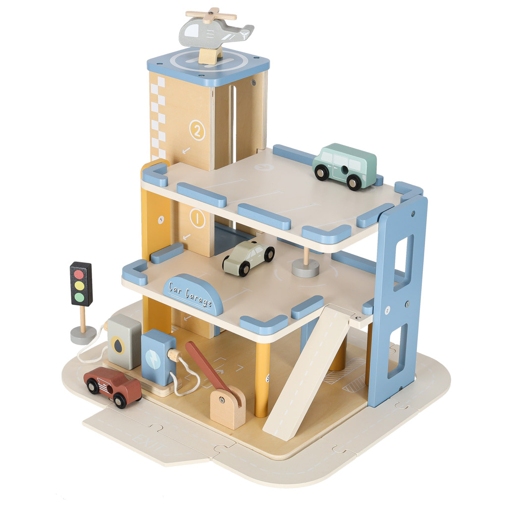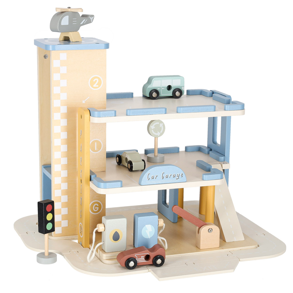 Drewniany garaż wyróżnia się trwałością i bezpieczeństwem, a staranne wykonanie sprawia, że wygląda nowocześnie i estetycznie. To duży, solidny, trzypiętrowy parking idealny dla chłopców i dziewczynek, który oferuje niekończącą się zabawę. Świetny pomysł na prezent, który zachwyci każde dziecko i stanie się piękną ozdobą dziecięcego pokoju.