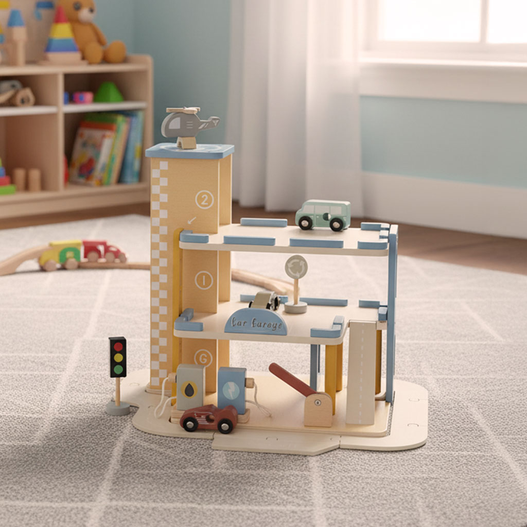 Odkryj wyjątkowy drewniany parking trzypiętrowy ze stacją benzynową, który łączy w sobie świat motoryzacji, kreatywnej zabawy i ekologicznych materiałów. To idealny zestaw dla małych fanów aut, który pozwala tworzyć własne historie, uczy zasad ruchu drogowego i rozwija wyobraźnię. Solidne wykonanie oraz piękne detale sprawiają, że ten garaż stanie się ulubionym miejscem zabawy każdego dziecka.