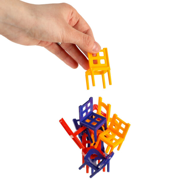 Zadaniem graczy jest układanie jak najwyższej wieży z kolorowych krzesełek, dbając o stabilność konstrukcji. Każdy ruch wymaga precyzji i skupienia – wystarczy jedno nieostrożne dołożenie, by cała wieża runęła! Gra doskonale rozwija koordynację ręka–oko, cierpliwość i logiczne myślenie, a przy tym uczy planowania i delikatności ruchów.