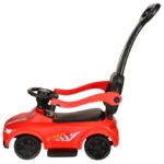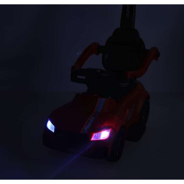 Dzięki siedzisku z oparciem i barierkom ochronnym zapewnia pełen komfort i stabilność podczas jazdy. W pierwszym etapie rodzice mogą pchać jeździk, a gdy dziecko nabierze pewności, barierki można zdemontować, by maluch mógł samodzielnie sterować pojazdem, odpychając się nóżkami. Sportowy wygląd, czerwony kolor, efekty świetlne i dźwiękowe sprawiają, że każda przejażdżka staje się ekscytującą przygodą.