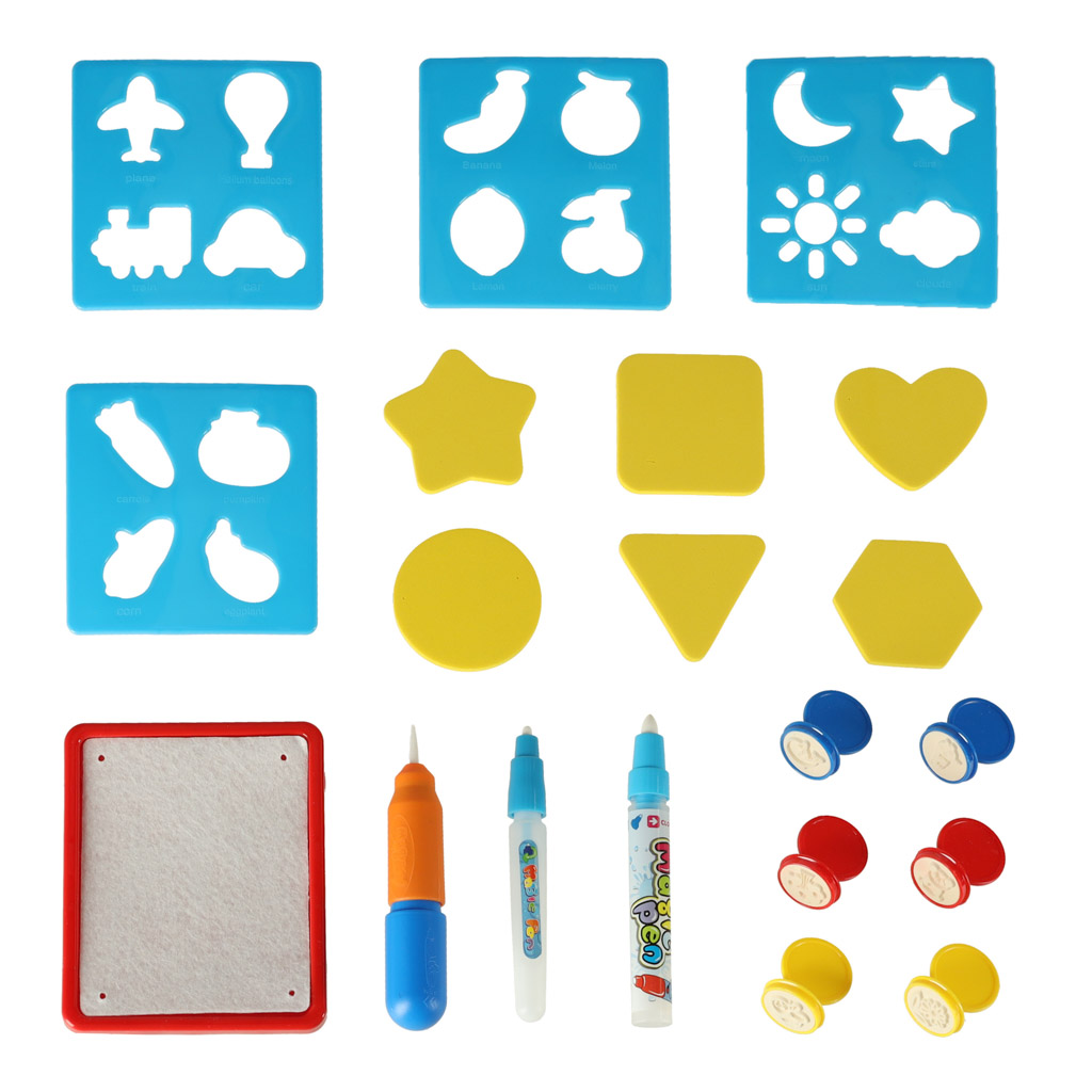 Duża powierzchnia (100 cm × 80 cm) zapewnia swobodę tworzenia, a w zestawie znajdziesz wodny mazak, szablony i stempelki, dzięki którym można rysować, odciskać wzory i odkrywać ukryte obrazki. Mata wysycha po chwili, co pozwala zaczynać zabawę od nowa – bez końca! To nauka przez zabawę w najczystszej postaci – bez zabrudzeń, bez sprzątania, bez stresu.