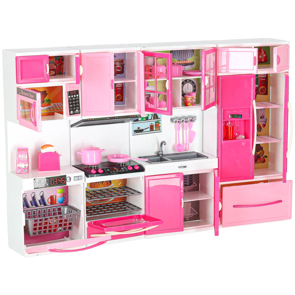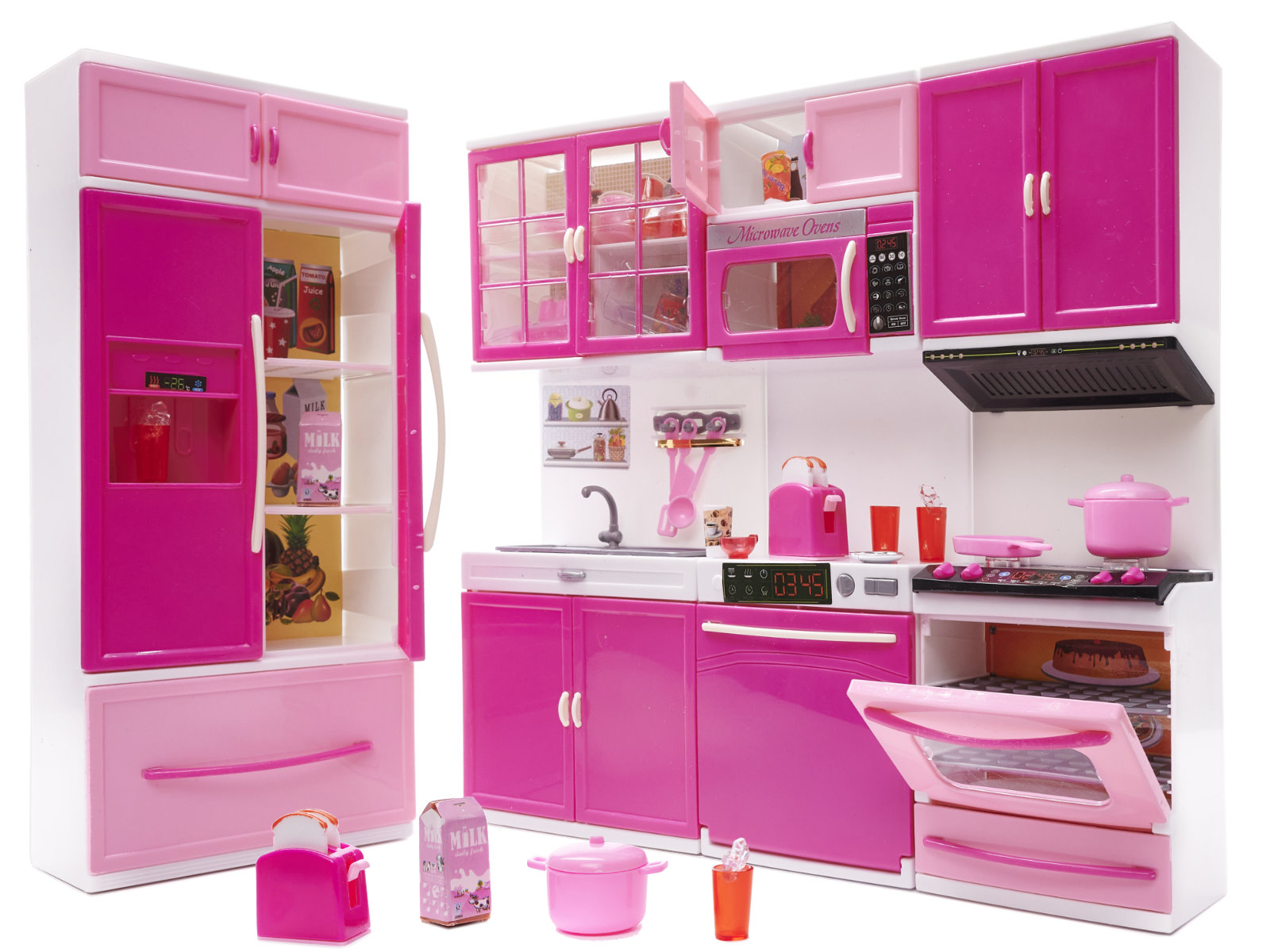 Mebelki dla lalek – kuchnia z oświetleniem LED to wyjątkowa zabawka, która przenosi dzieci w świat domowych obowiązków i kreatywnej zabawy. Uroczy, różowy design sprawia, że kuchnia wygląda stylowo i doskonale komponuje się z innymi akcesoriami dla lalek, tworząc realistyczny miniaturowy dom.