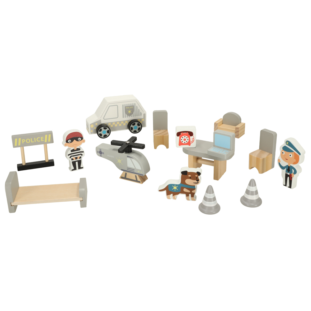 Komisariat wspiera kluczowe umiejętności rozwijające się u dziecka: wyobraźnię, kojarzenie przyczynowo-skutkowe, zdolności manualne, koordynację ręka–oko oraz kompetencje społeczne dzięki odgrywaniu ról. Zróżnicowane poziomy budynku rozwijają orientację przestrzenną, a praca figurkami i pojazdami ćwiczy precyzję ruchów. To kompleksowa zabawka edukacyjna, która angażuje, uczy i zapewnia godziny wartościowej zabawy.