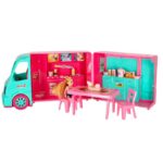 W zestawie znajduje się lalka, stół z dwoma krzesłami oraz zestaw akcesoriów, które pozwalają na tworzenie wielu scenek – od sprzedaży lodów po wspólne posiłki w kamperze. Po otwarciu pojazdu wnętrze zamienia się w przytulny domek na kółkach. Zabawka wykonana jest z bezpiecznych materiałów i posiada certyfikat CE, gwarantujący zgodność z europejskimi normami bezpieczeństwa.