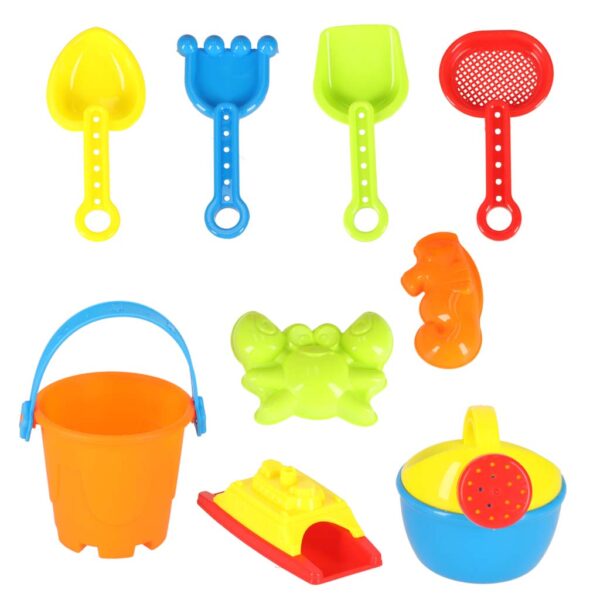 - Narzędzia do piasku: 2× łopatki, 1× grabki, 1× sitko
