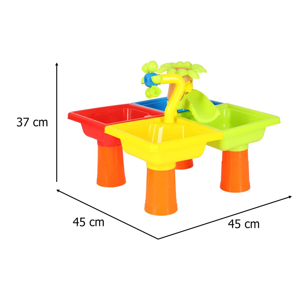 Stolik wodno-piaskowy to fantastyczna zabawka dla dzieci od 3. roku życia, która łączy eksperymentowanie, kreatywność i naukę przez zabawę. To połączenie toru wodnego, piaskownicy i zestawu sensorycznego, które zapewni maluchom niezliczone możliwości odkrywania i tworzenia – w ogrodzie, na tarasie, a nawet na plaży!