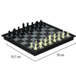Plansza o wymiarach 19 cm × 19,7 cm wykonana jest z trwałego plastiku i wyposażona w magnesy stabilizujące pionki, dzięki czemu gra jest komfortowa nawet w podróży lub na nierównej powierzchni. Stabilne pionki pozostają na swoim miejscu, co pozwala w pełni skupić się na strategii i przyjemności z gry.