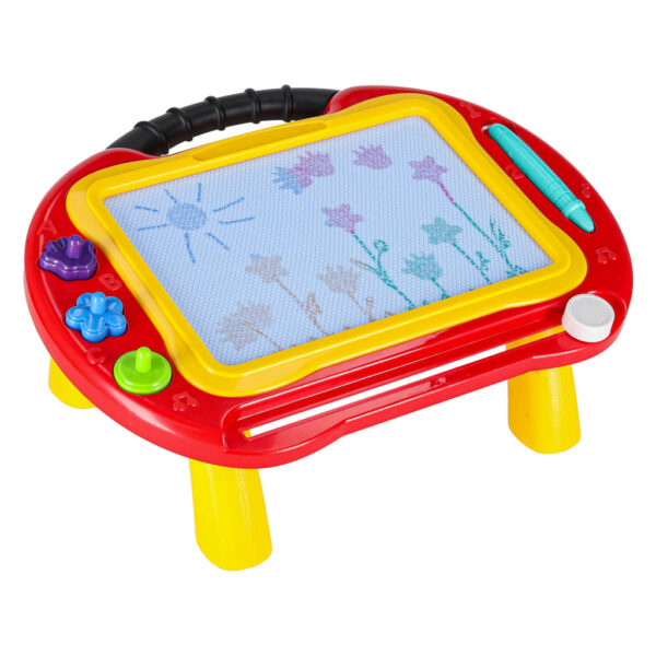 Odkryj kreatywny stolik 2w1 ze znikopisem i stempelkami, który pozwala dzieciom tworzyć bez końca – bez kartek, bez bałaganu, za to z ogromem radości! Ten wszechstronny zestaw to zarówno stabilny stolik edukacyjny, jak i wygodna przenośna tablica magnetyczna, dzięki której maluch może rysować, pisać i uczyć się w każdym miejscu. To idealna propozycja dla małych artystów, którzy kochają tworzyć kolorowe obrazki.