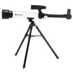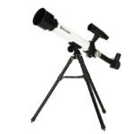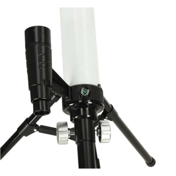 Zestaw wyposażony jest w dwa wymienne okulary o powiększeniach 30x i 60x, co umożliwia dopasowanie przybliżenia do obserwowanego obiektu. Stabilny statyw zapewnia wygodę i precyzję ustawienia, a wbudowany kompas ułatwia odnalezienie właściwego kierunku na niebie. Dodatkowym atutem jest uchwyt na telefon, dzięki któremu można robić zdjęcia obserwowanych ciał niebieskich i dzielić się nimi z innymi. Eleganczny, czarny kolor dodaje teleskopowi nowoczesnego wyglądu.