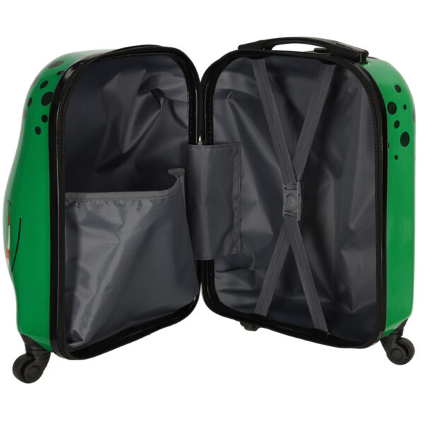 Zielona walizka z motywem krokodyla to połączenie praktyczności i dziecięcego uroku – idealna dla małych podróżników, którzy chcą mieć własny bagaż na każdą przygodę. Podróżowanie z dziećmi staje się z nią wygodne, bezpieczne i pełne radości.