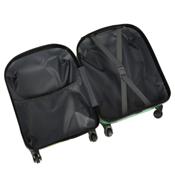 Lekka, a jednocześnie wytrzymała konstrukcja gwarantuje długotrwałe użytkowanie, a cztery obracające się kółka i teleskopowa rączka ułatwiają prowadzenie walizki nawet najmłodszym. W środku znajduje się przestronna komora z pasami zabezpieczającymi oraz kieszonka na drobiazgi, które pomagają w zachowaniu porządku podczas każdej podróży. Zamek błyskawiczny chroni zawartość przed przypadkowym otwarciem, zapewniając bezpieczeństwo i wygodę.