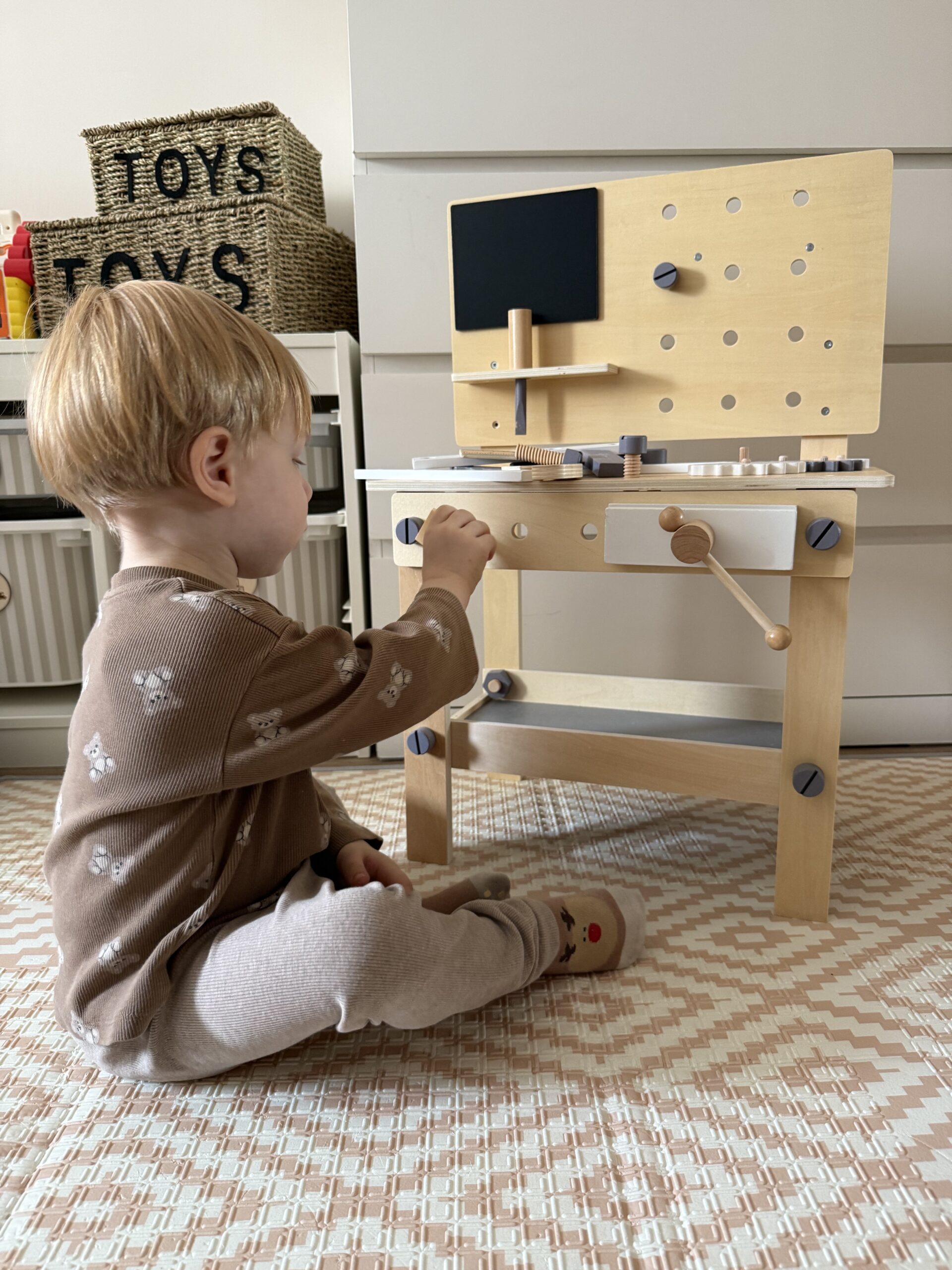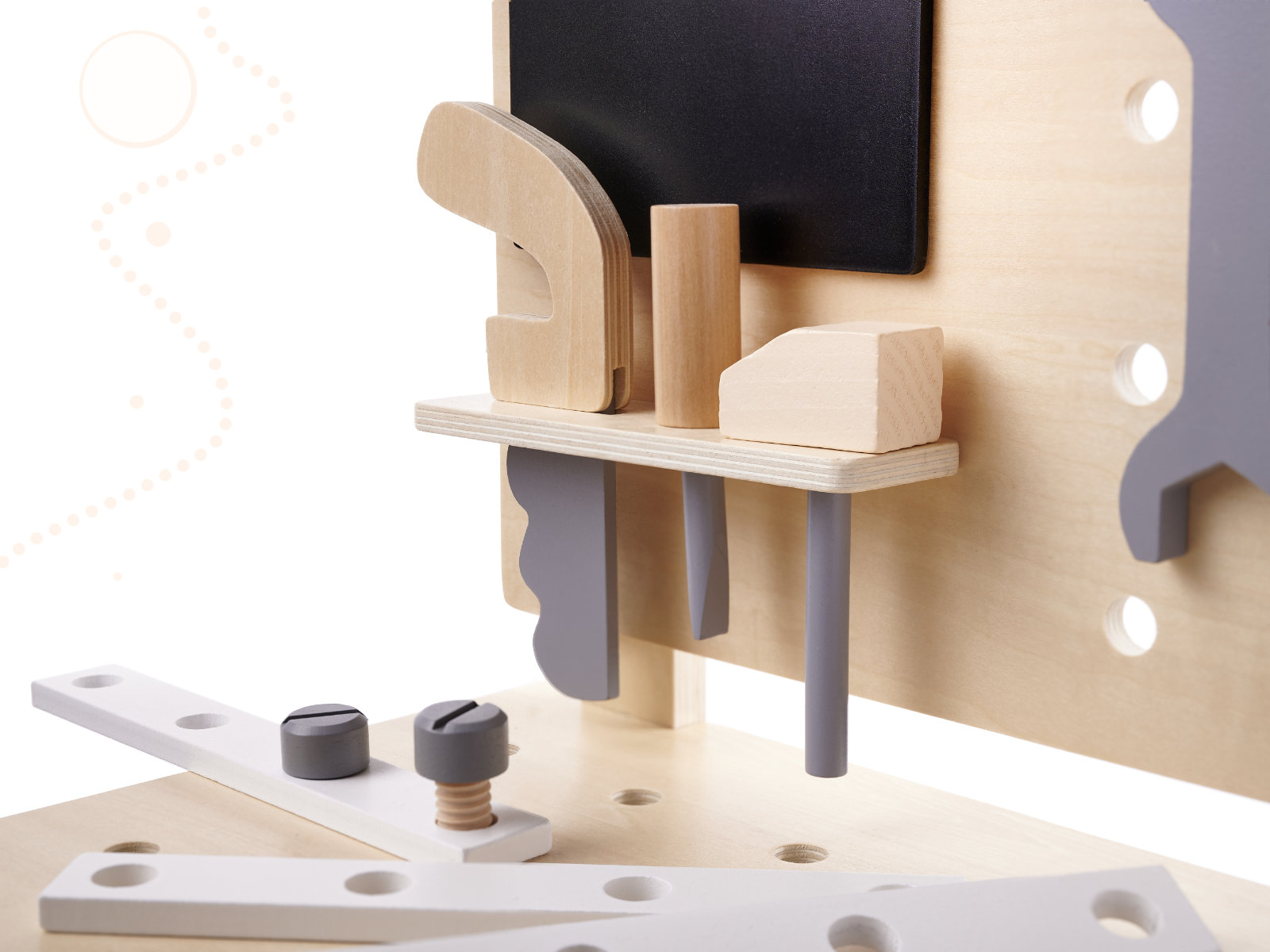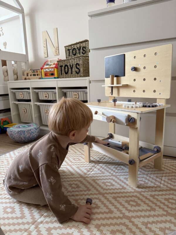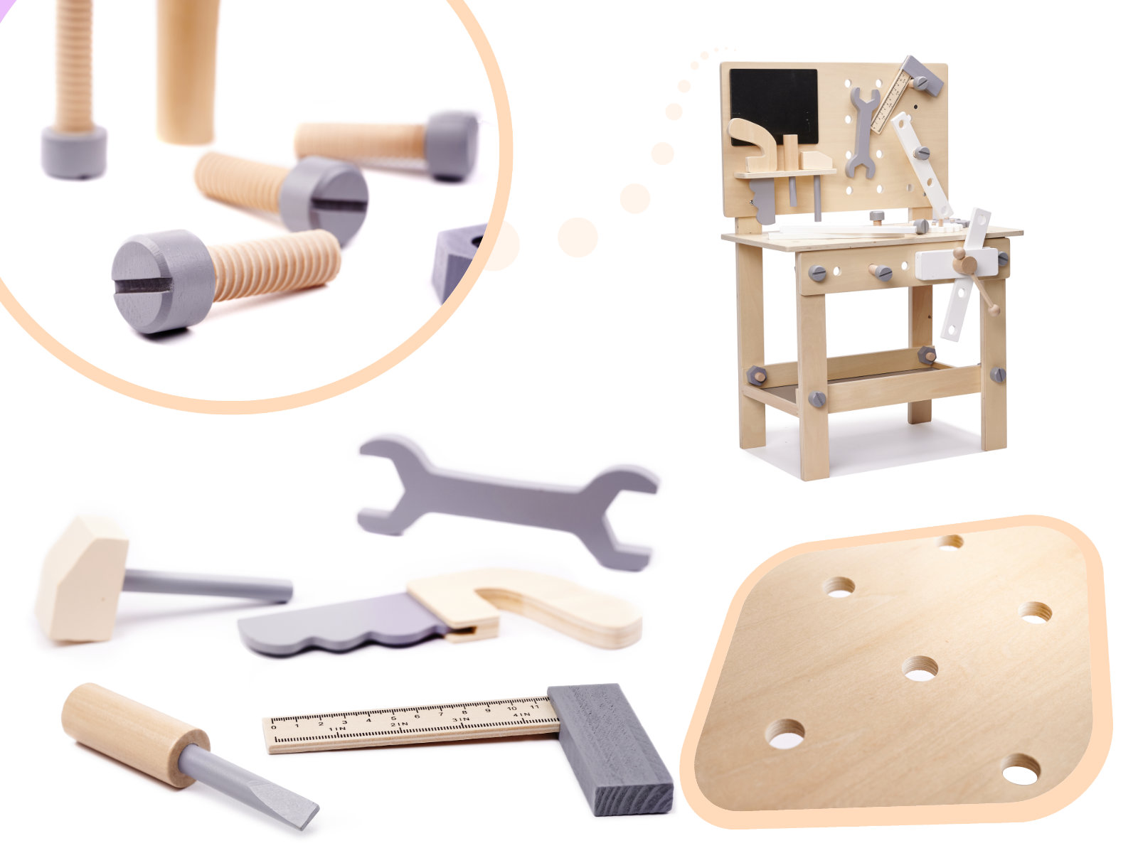 To idealny prezent dla małej „złotej rączki”, który łączy naukę z zabawą i wprowadza dziecko w świat majsterkowania. Drewniany warsztat nie tylko bawi, ale też inspiruje do tworzenia i odkrywania, pięknie prezentując się w każdym dziecięcym pokoju.