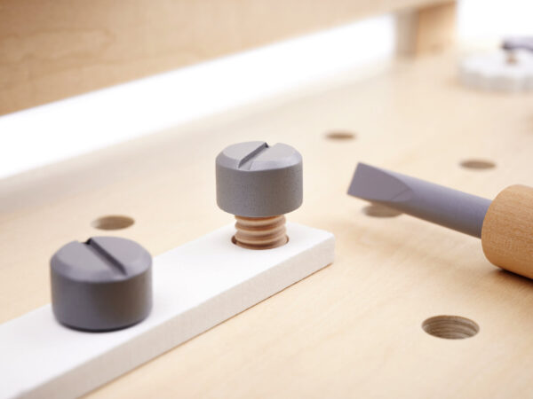 Podczas wkręcania, dopasowywania i skręcania elementów maluch doskonali koordynację, koncentrację i logiczne myślenie, ucząc się poprzez praktyczną zabawę. Naturalne drewno i staranne wykonanie zapewniają bezpieczeństwo, trwałość i przyjemny dotyk naturalnych materiałów.