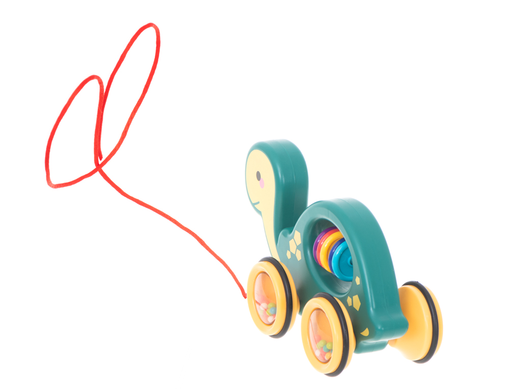Dzięki długiemu sznurkowi żółwik może towarzyszyć maluchowi w pierwszych krokach — ciągnięcie zabawki wspiera koordynację i rozwój motoryki małej. Prosty, drewniany design inspirowany pedagogiką Montessori uczy skupienia i samodzielności, zachęcając dziecko do odkrywania świata we własnym tempie.